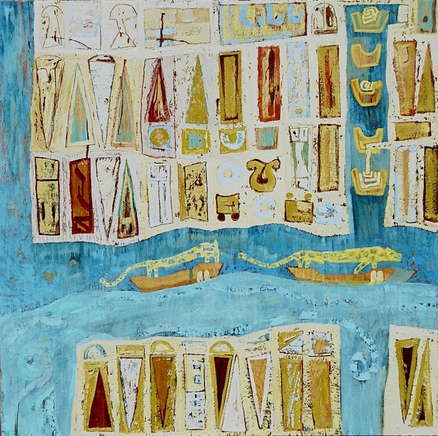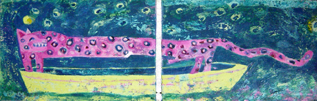Barca y jaguar (diptico) óleo / lino 27x82cm