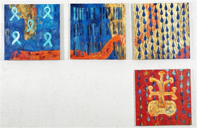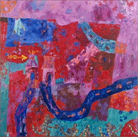 Gabriela es pintora de la luz del artificio, que no la real de la realidad banal. Gabriela entona himnos sacros con sus reinventos del códice, gato y garabato. He ahí la razón de ser del arte tan individual y subjetivo. Admiro esta creación por la misma sin razón originaria. Las grandes creaciones son eso precisamente. Su arte es meteorito de sombras y la luz es luz del insomnio. Poesía caligráfica.