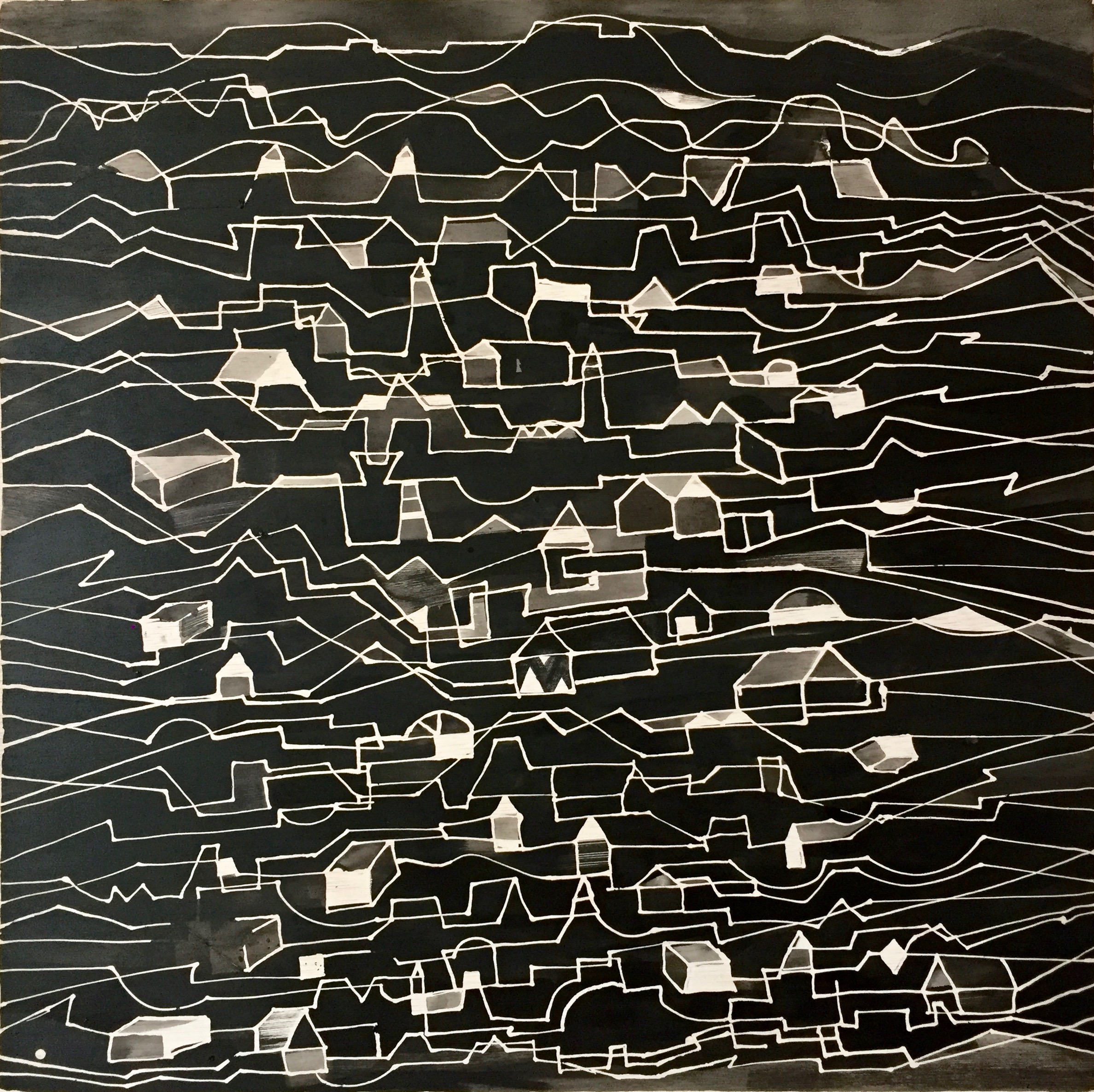 «Al Bages»tinta/madera 60 x 60. Serie ciudades suspendidas,